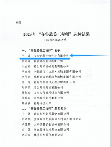 發布時間:[2024-7-5 15:51:56] 瀏覽量:3062次近日,山東省工程師協會下發關于授予2023年度“齊魯最美工程師”榮譽稱號的通報,山東健源生物科技有限公司董事長王誠被授予2023年度“齊魯最美工程師”榮譽稱號。