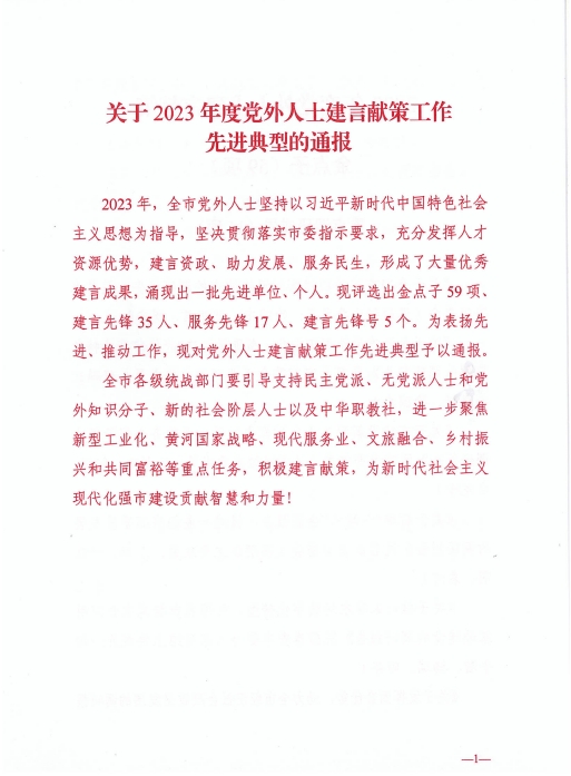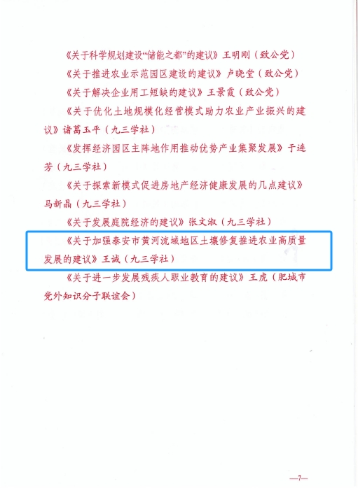 發布時間:[2024-7-9 17:52:5] 瀏覽量:3389次會上公布了《關于2023年度黨外人士建言獻策工作先進典型的通報》,王誠董事長被評為2023年度黨外人士建言獻策“建言先鋒”,撰寫的《關于加強泰安市黃河流域地區土壤修復推進農業高質量發展的建議》被評為2023年度黨外人士建言獻策“金點子”。