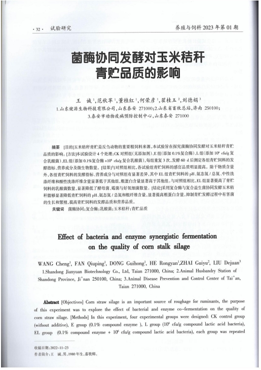 發布時間:[2025-1-15 17:6:25] 瀏覽量:2644次2024年12月31日,由湖北省科學技術協會指導,湖北省科學技術期刊編輯學會組織實施的2023年度湖北省科技期刊百篇優秀論文遴選結果公布,經過評選,山東健源生物科技有限公司董事長王誠帶領研發團隊撰寫的《菌酶協同發酵對玉米秸稈青貯品質的影響》論文入選2023年度湖北省科技期刊百篇優秀論文。