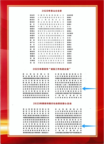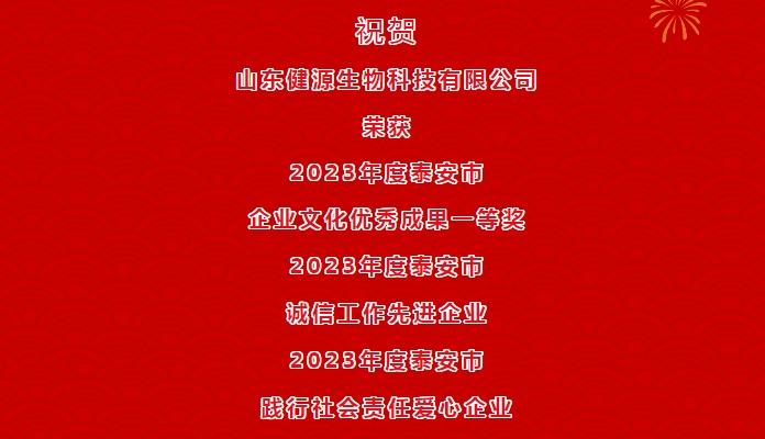市泰山企業家審委會經申報并認真評選,決定授予山東健源生物科技有限公司等24家企業(單位)為“泰安市誠信工作先進企業”稱號。