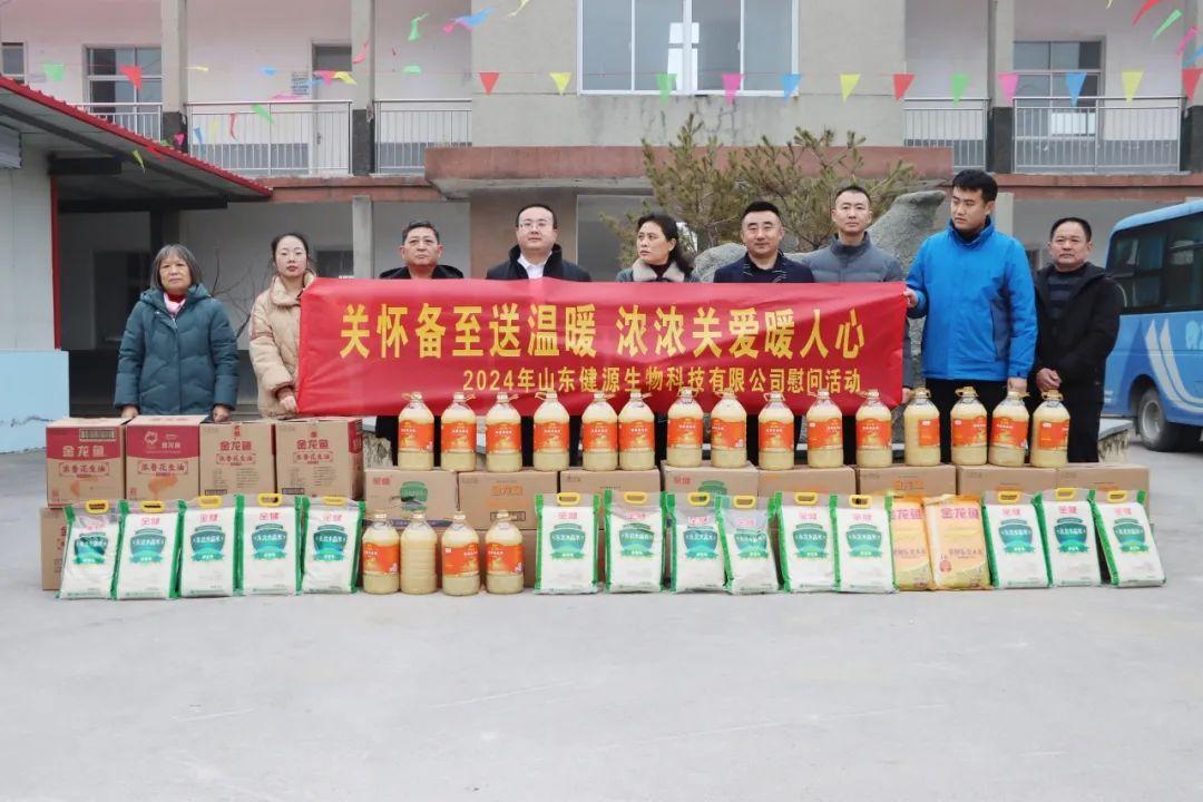 2024年1月31日,健源生物董事長王誠分別來到泰山區邱家店鎮東郭莊村和岱岳區徂徠鎮桃園村,看望了當地的貧困家庭,并為他們帶去了暖心的米、油等慰問品。