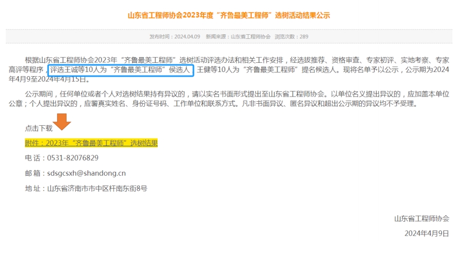 2024年4月榮獲“齊魯最美工程師”稱號